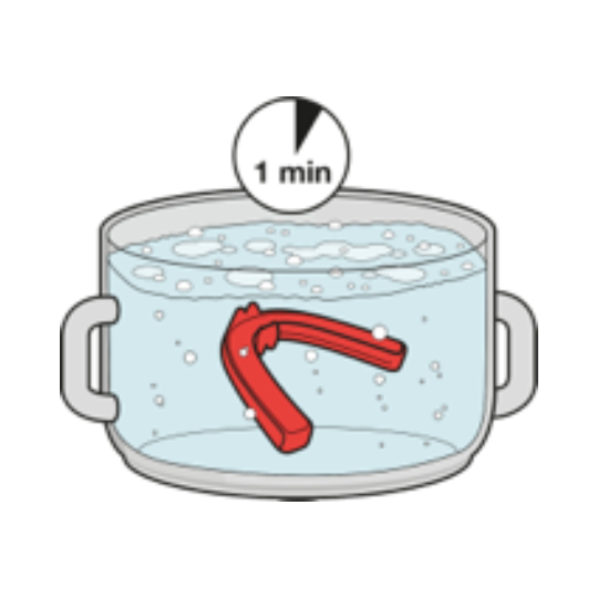Revodent® Schiene für 1 Minute ins heiße Wasser legen.